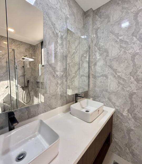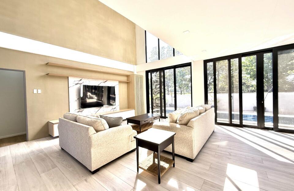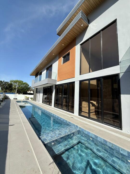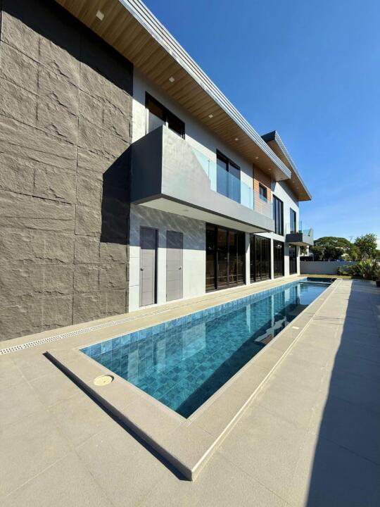 Inclusions: Brand New Semi-furnished House w/ Attic (with Split-type Daikin ACs in BRs and Floor-standing Samsung AC in Living area); G/F: 1 Guest Room w/ T&B + Foyer + Powder Room + Main Kitchen & Auxiliary Kitchen + Lap Pool w/ T&B + Laundry area + Maid's Room w/ T&B + Driver's Room w/ T&B +3-4 Car Garage; 2/F: 5 BRs w/ T&B each + Den/Office + Storage Room w/ Attic