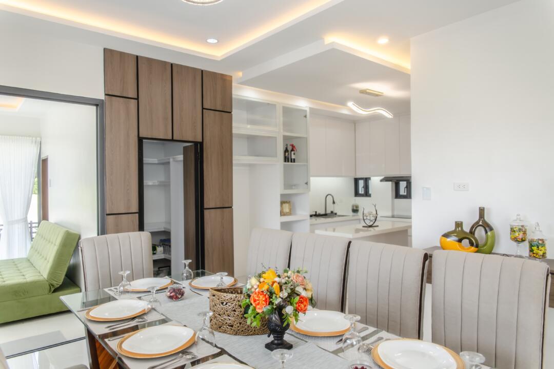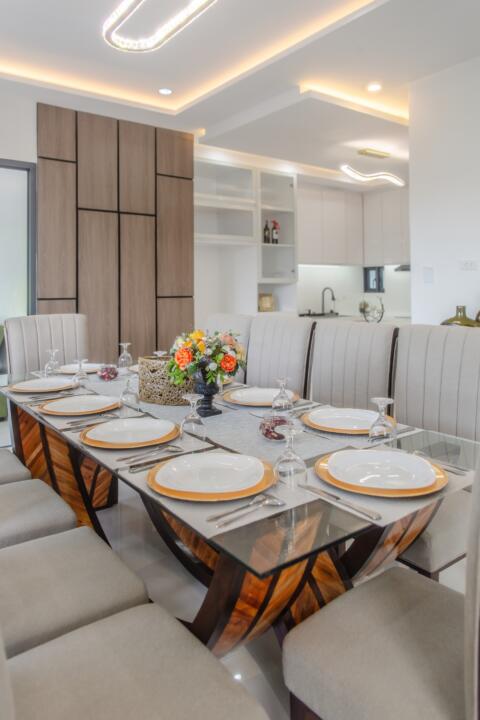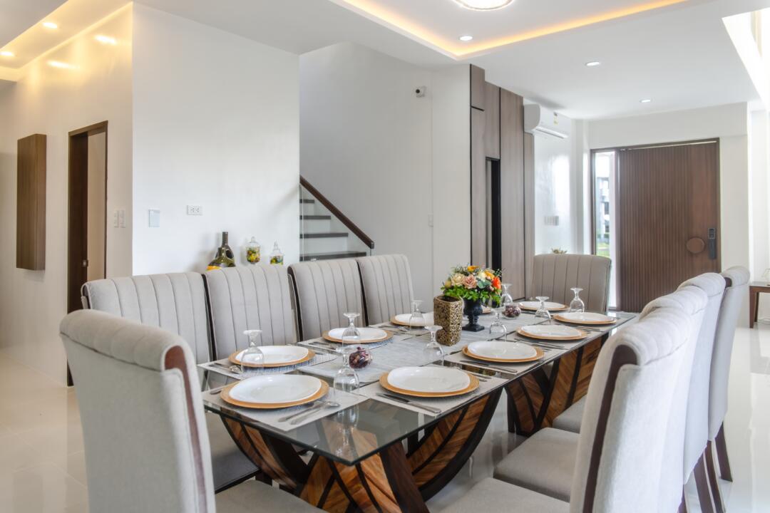 Inclusions: Brand New Furnished 3-Storey Open Above House (Sofa Set, 10-Seater Dining Set, Built-in Induction Stove & Hood, Beds for 4 BRs, 6-Seater Recliner Theater Sofa, 75-Inch Smart TV, Sound System, 8 Camera CCTV, Smart Water Closet for Powder Room & MBR, Swimming Pool, Closets in BRs and Cabinets in Kitchens); Lanai or Guest Room in G/F w/ own T&B + Powder Room in G/F + Main Kitchen + Auxiliary Kitchen + Pantry + Storage Room + Maid's Quarter w/ own T&B + Driver's Quarter w/ own T&B + 4BRs in 2/F w/ own T&B & Closets + Theater/Family Room in 3/F w/ own T&B + Mini-Swimming Pool + 2-Car Garage