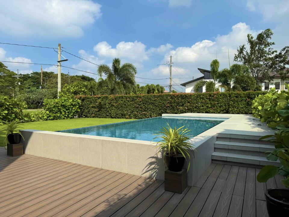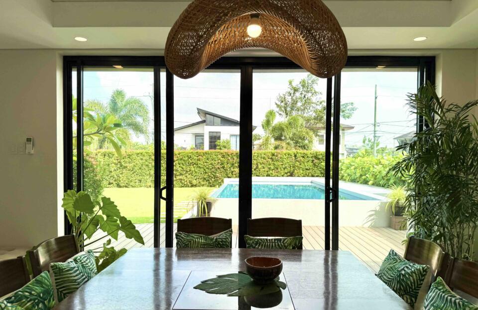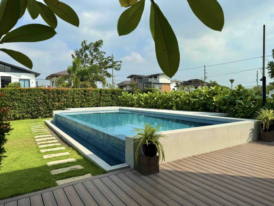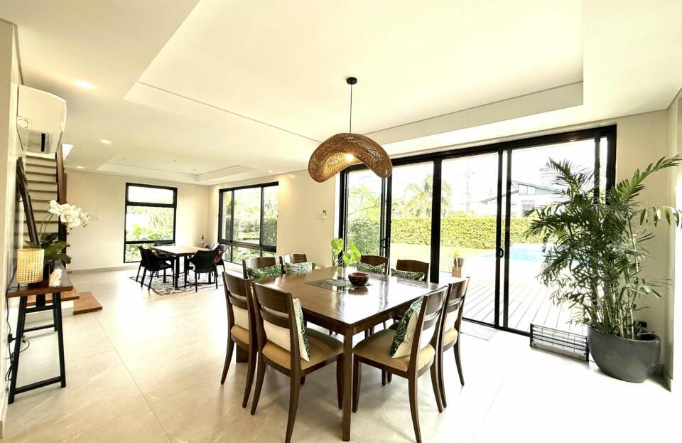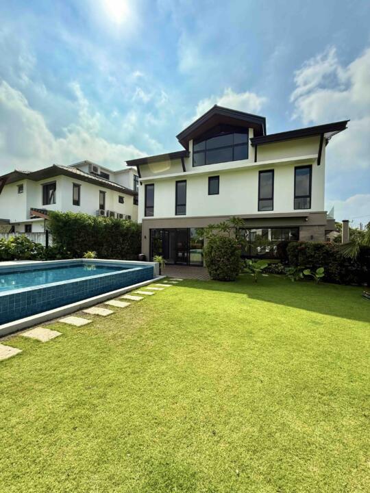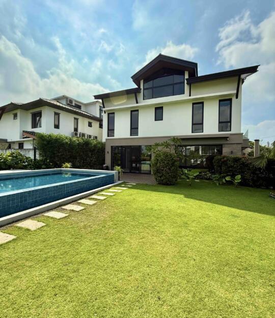 Inclusions: Brand New 3-Storey Furnished House (A/Cs in G/F and all BRs, Dining Set, Gas Range, Refrigerator, Beds, Solar except living room set); 3BRs w/ T&B + 1 Large Attic Bedroom w/ T&B + Living Area + Dining Area + Main Kitchen + Auxiliary Kitdhen + Maid's Room w/ T&B + Pool Deck + Garden and 38sqm Swimming Pool + 2-Car Garage